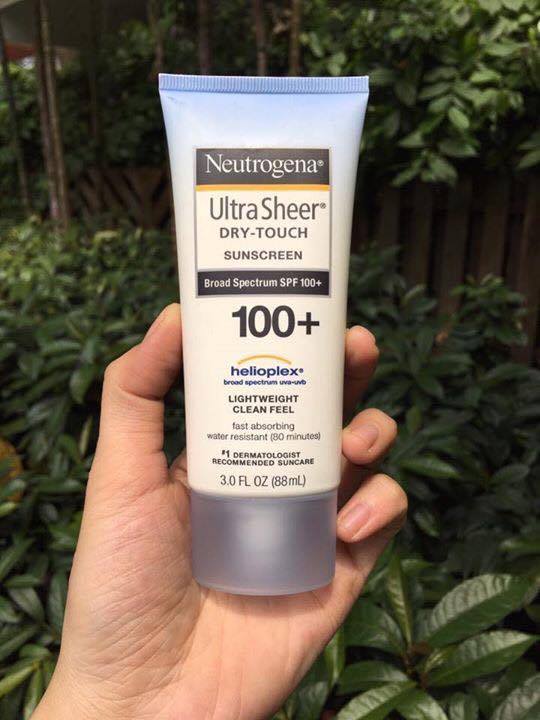 - Neutrogena Ultra Sheer Dry Touch SPF 100 88ml là dòng kem chống nắng đứng đầu trong số các kem chống nắng được các bác sĩ da liễu tại Mỹ khuyên dùng. Với độ chống nắng cao – SPF 100, độ quang phổ rộng – Broad Spectrum cùng công nghệ Heliopex độc quyền, giúp bảo vệ làn da bạn dưới tác hại của ánh nắng mặt trời một cách hiệu quả, tránh mọi tổn hại cho da đến mức tối đa.